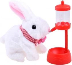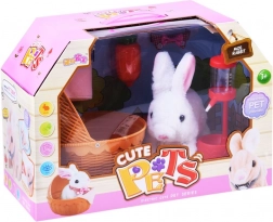 A cute white bunny with pink ears will delight every child. After inserting the batteries, the bunny moves forward, wriggles its nose comically, and makes bunny sounds. The set includes a basket with a blanket, a carrot, and a feeding bottle for realistic pet care.