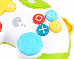 A colorful kids’ controller in the style of a game console brings lights, melodies, and sound effects that develop fine motor skills, hearing, and imagination. Thanks to the ergonomic shape for small hands and the realistic button layout, children can enjoy safe pretend play without borrowing a real controller.