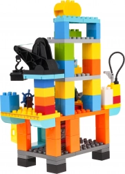 The set develops fine motor skills, logical thinking, and imagination. Safe, durable pieces in pleasant colors invite repeated building and mixing. Opening cabinets and decorative stickers give each creation a unique style.