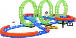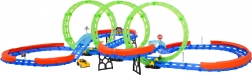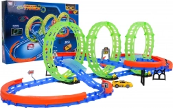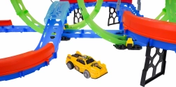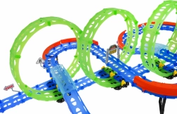 Build your own racing circuit with three large loops and enjoy a thrilling ride with the LED car. Thanks to fluorescent elements, the track glows in the dark, so races look great even in the evening. The stable construction, protective guardrails, and varied sections ensure smooth runs at high speed.