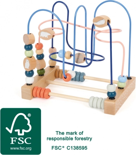 This motor skill maze is made of FSC® certified wood and offers long-lasting fun for children. With wooden beads and sliding elements featuring polar bear, seal, and snowy owl motifs, children will be greatly entertained while developing their fine motor skills and hand-eye coordination. The ring counters offer additional play options and teach children counting in a fun way.