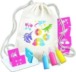 With this 4M creative set, kids can decorate their own drawstring backpack and turn it into a unique fashion accessory. The application is simple, safe, and easy even for beginners thanks to the included stencils and fabric paints. Ideal as a gift for little artists.