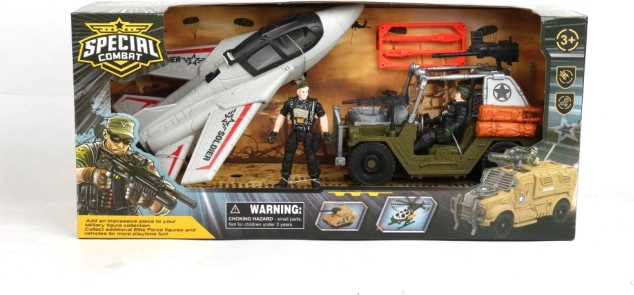 - Military vehicle, fighter jet, 2 soldier figurines, accessories
