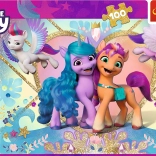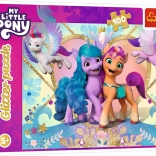 The Glitter puzzle with 100 pieces My Little Pony Sparkling Ponies was designed especially for pony fans. Each piece and the box are coated with fine golden glitter that gives everything a chic, sparkling look. By assembling this puzzle, you can create a beautiful, glittering decoration for a child’s room.