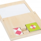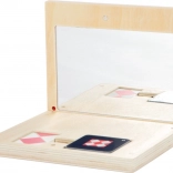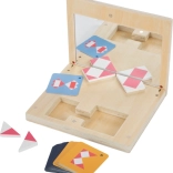 This fascinating game offers children a fun and interactive way to learn to recognize and create symmetrical patterns and shapes. By placing wooden tiles in front of a mirror, children create shapes that together form the desired pattern based on the included cards.