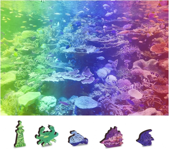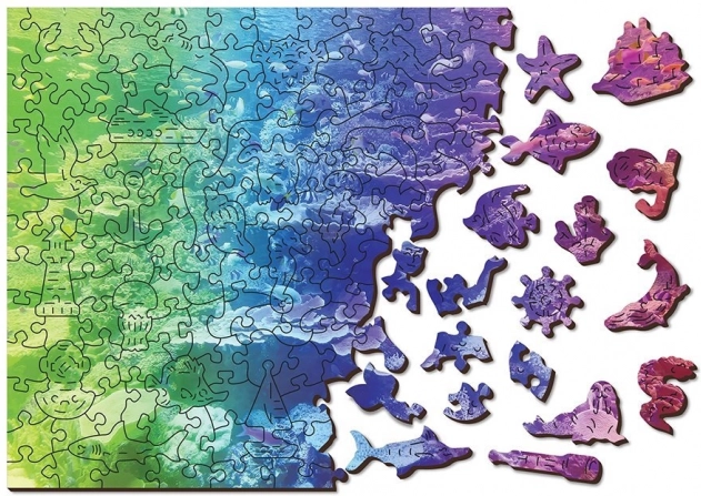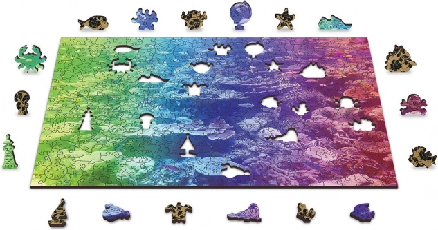 Discover the joy of puzzling with the wooden double-sided puzzle Coral Reef 2-in-1. Thanks to the specially shaped pieces, double-sided design, and precise laser craftsmanship, it offers a fun challenge even with fewer pieces. The puzzle is eco-friendly – no plastic packaging and also makes a stylish gift.