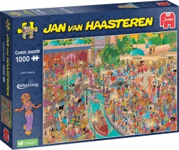 Enjoy hours of fun with high-quality JUMBO puzzles from the Jan van Haasteren series. The “Efteling Fata Morgana” illustration brings trademark humor, countless tiny scenes, and hidden motifs like a shark fin, wandering hands, and Haasteren’s self-portrait. With 1000 pieces and a colorful, detailed drawing, assembling is captivating for the whole family.