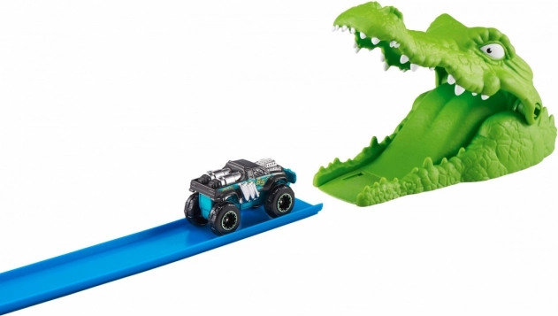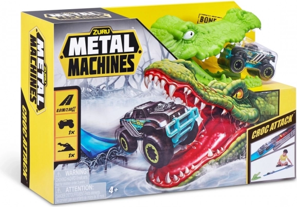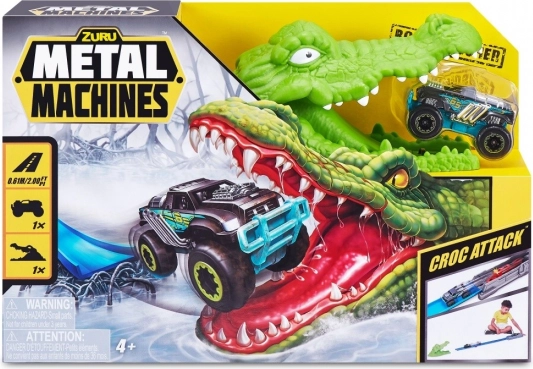 Zuru Metal Machines Crocodile Attack is a racetrack that will draw you into a world of action-packed fun. Head towards the dangerous crocodile waiting for your Monster Truck. Reach sufficient speed to safely overcome the crocodile's jaws.