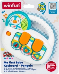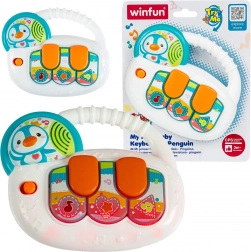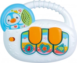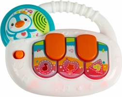 The Penguin Piano offers great fun for little musicians. It has three large orange buttons that play cheerful melodies and light effects when pressed. With its practical handle, it is easy to carry, making it an ideal travel toy.