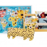 Embark on an adventurous journey with 60-piece educational puzzles that present continents, oceans, and animals from around the world.