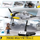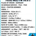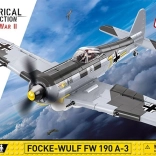 This single-engine, single-seat fighter aircraft is known for its powerful BMW 801 D-2 engine and exceptional features, including the application of an additional armament system. The Focke-Wulf FW 190 A-3 building set is an accurate replica at a 1:32 scale, easily assembled from 382 high-quality COBI building blocks. The aircraft's state color is brought to life with precisely crafted details.