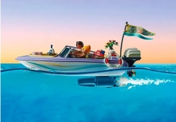 This PLAYMOBIL set invites you to many romantic moments and hours of fun. After a romantic wedding reception, the newlyweds embark on their honeymoon, with a motorboat ride across the sea promising unforgettable experiences.