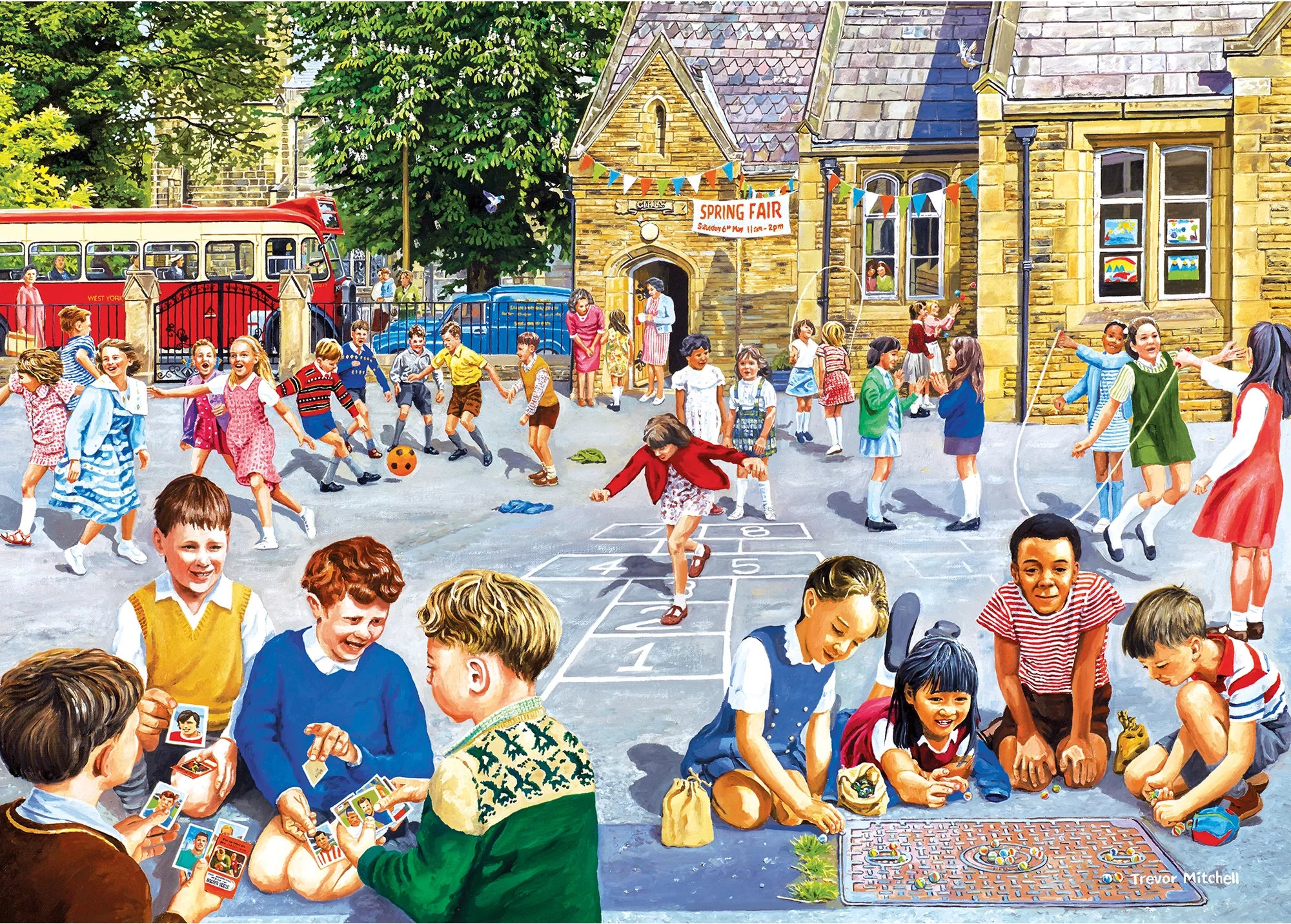 We all have fond memories of our school years, though some may have been better than others. Join Trevor Mitchell on a trip down memory lane and relive some of the best moments from primary school. The set includes 4 puzzles with the same number of pieces and dimensions. Reference images of the motifs are included in the box.