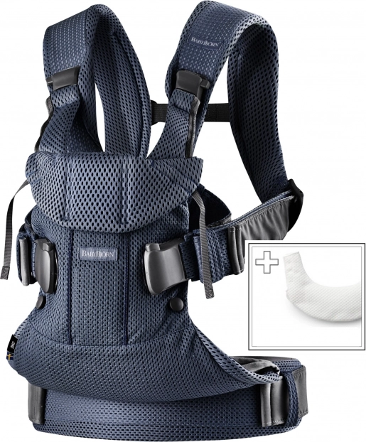 The lightweight, breathable ergonomic BabyBjörn One Air carrier gives parents comfort and free hands, while keeping babies safely close. Thanks to the mesh it dries quickly, breathes excellently, and together with the wide lumbar belt and softly padded straps ensures even weight distribution. It offers 4 carrying positions, an integrated newborn insert, and adjustable head support for safety from birth up to about 3 years. A practical drool bib to protect the carrier is included.