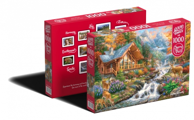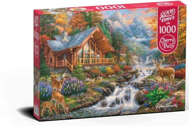 This puzzle offers a peaceful escape into the world of alpine beauty. It depicts a scene with a mountain cabin by a river, autumn trees, and sunbeams that enchant with their nostalgic atmosphere.
