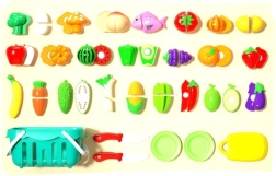 The set of slicing fruits and vegetables in a practical basket offers children fun and develops their motor skills. It includes a total of 30 pieces.
