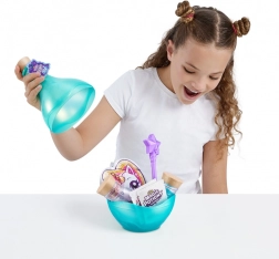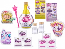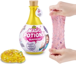 Each potion-shaped bottle hides colorful surprises and ingredients for making slime – ideal for creative kids.