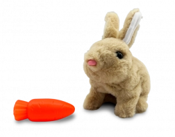 A cute interactive bunny brings children hours of fun and care. It hops, wiggles its ear, and fosters imagination, fine motor skills, and empathy. A carrot for pretend feeding is included.