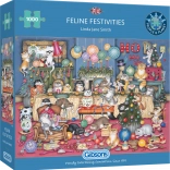 Discover the joy of assembling with GIBSONS Puzzle Cat Holidays. This 1000-piece puzzle depicts a beautiful and detailed illustration of the celebration of the cat world. The perfect activity for moments of relaxation or fun with the family.