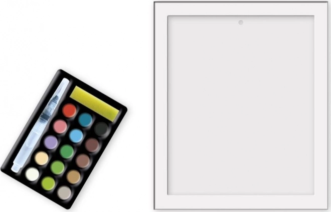 Package includes: 2 pictures, a paint palette, a refillable brush, and a frame.
