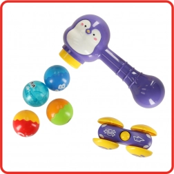 Launching marbles with the hammer and watching them roll down naturally develops hand–eye coordination and explains basic physical phenomena.