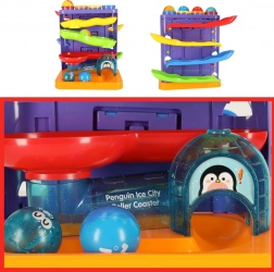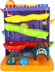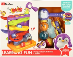 The interactive marble run with a cute penguin theme is a great choice for a first STEM-style toy. Kids place the marbles in the top openings and safely “launch” them onto the track using the hammer. Colorful lanes and smooth descents bring lots of joy while building patience and focus.
