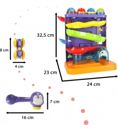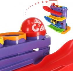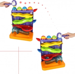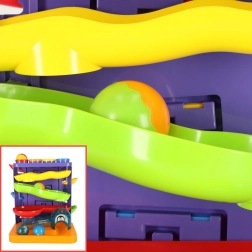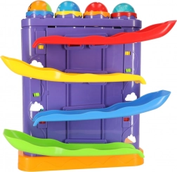 A fun and colorful 3-in-1 marble run for children aged 3+ featuring two separate tracks – one for marbles and one for a car. With the hammer, kids launch the marbles from the top openings and watch them roll down. The toy develops fine motor skills, hand–eye coordination, and naturally illustrates the principles of gravity. Includes 4× marbles, a car, and a hammer.