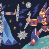 Janod brings a fun and educational activity for children from 6 years old. This set includes three colorful pictures that children can decorate with two different colors of sand and glitter. Simply use the spatula to remove the sticky parts and spread the beautiful glitter over the pictures. Completing one fun picture takes just 30 minutes.