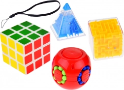 The set includes four unique toys that enhance concentration and hand motor skills. Ideal for relaxation and exercise in logical thinking.