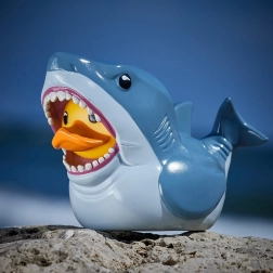 A fun interpretation of the duck with Bruce from Jaws provides collectors with a unique piece.