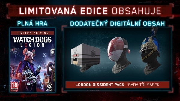 - Full game Watch Dogs Legion, London Dissident Pack (3 masks), Golden King pre-order bonus (mask, pistol skin, vehicle skin)