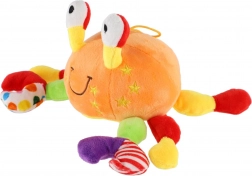 This colorful plush crab rattle captivates babies at first sight. Its light, easy-to-hold design and pleasant plush make it an ideal companion for the crib, stroller, and on the go. Gentle sound effects when shaken naturally develop hearing and hand–eye coordination.