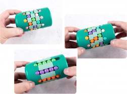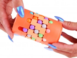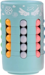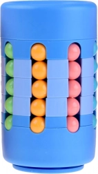 The rotating puzzle works on a simple principle: by turning the individual rings, move the beads so that each row has unified colors. One empty slot lets you shift the beads to create the right combinations. It looks easy at first glance, but it can entertain for hours.