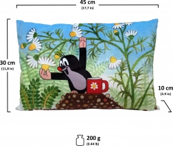 Discover the soft pillow with the motif of the beloved Mole, an ideal addition to a child's crib, for travel, or as a decoration in a child's room.
