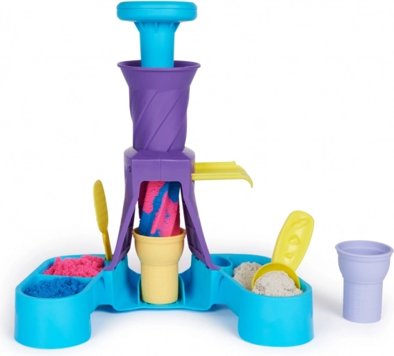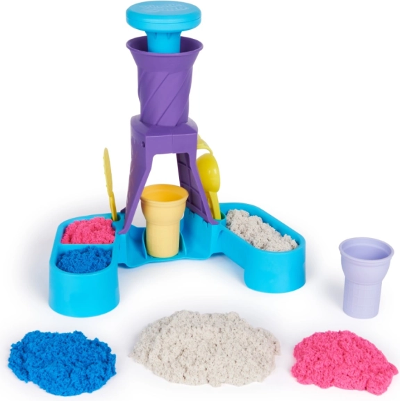 Children can create, decorate, and serve their ice cream creations with different colors of kinetic sand.