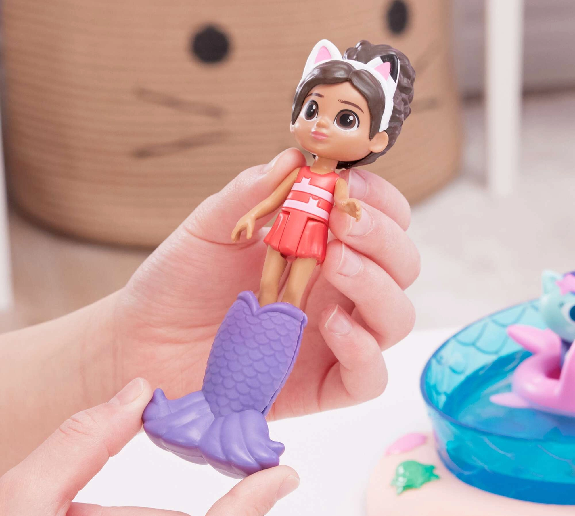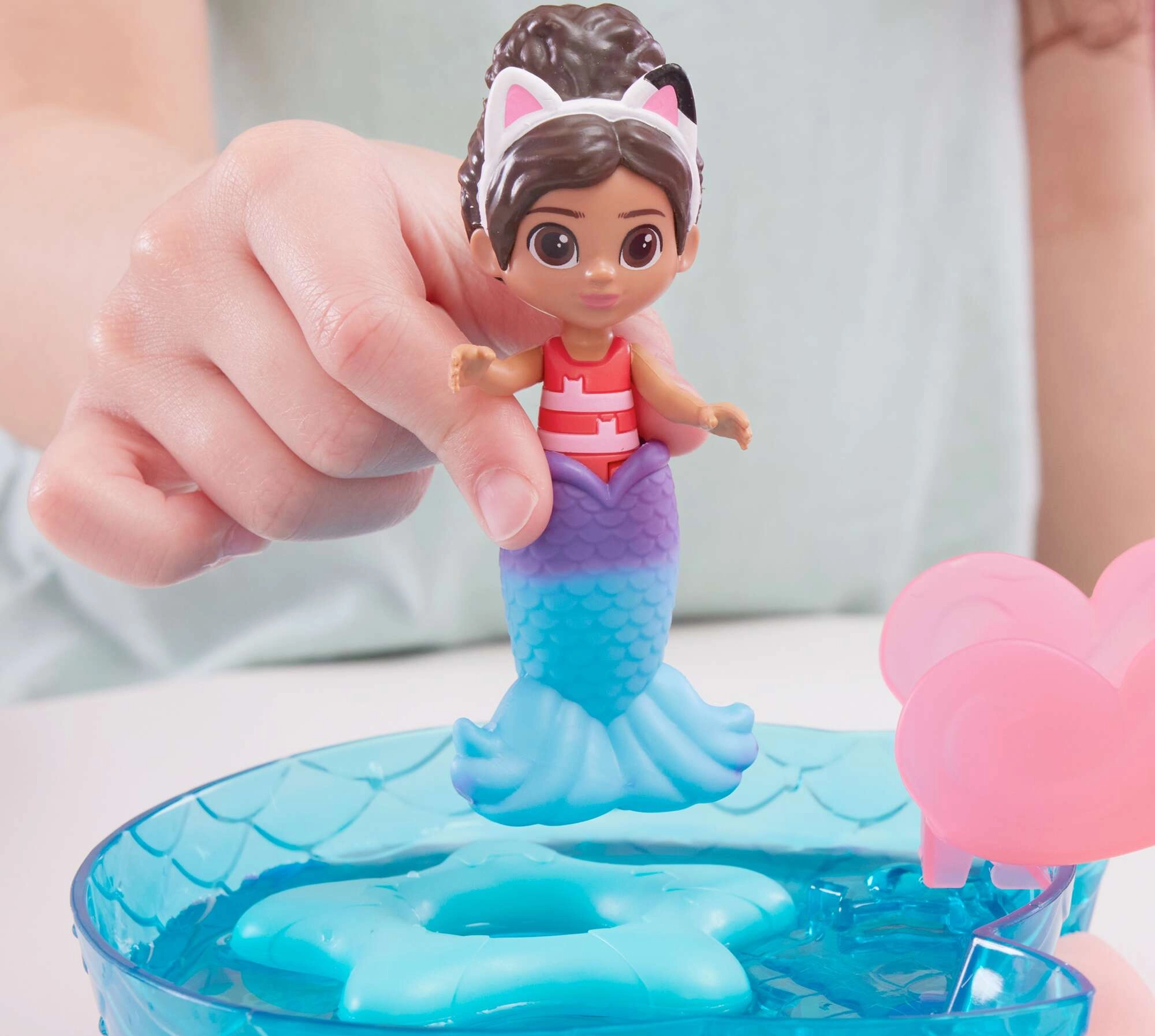 • Color-changing: warm water activates the color effect on Gabby’s and MerCat’s tails.