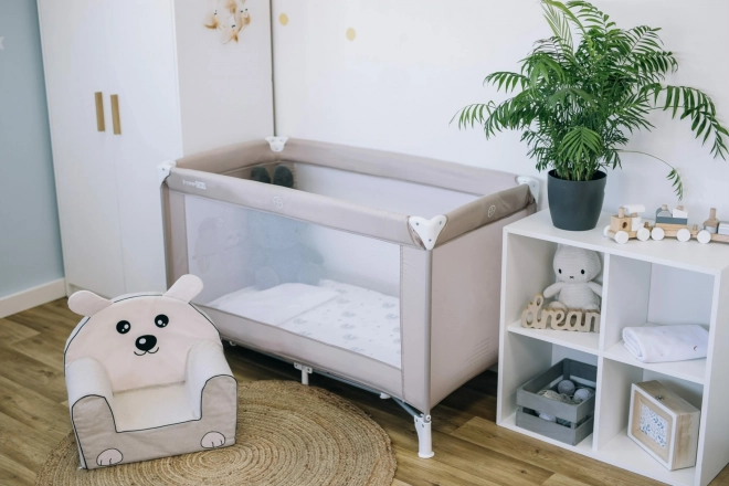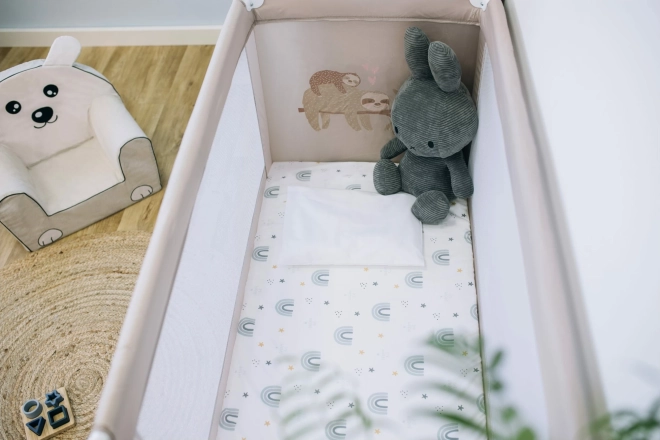 The practical and safe FreeOn Love Sloth travel cot in elegant beige is ideal for trips as well as everyday use at home. It offers quick and easy folding, a soft mattress for comfortable sleep, and a carry bag for clean, easy storage and transport.