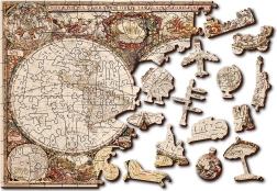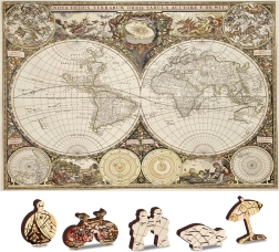 The wooden puzzle with an ancient map motif will delight lovers of original jigsaws and collectors of unusual gifts. Thanks to the double-sided 2-in-1 design, you can assemble according to the image on the front, or try completing the back side with a repeating pattern purely by piece shapes.