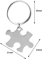 Discover the unique steel key pendant in the shape of a puzzle, offering you elegance and functionality in one. This pendant is made of surgical steel, ensuring its long durability and resistance to corrosion. Its smooth finish adds a shine that catches the eye. Perfect as a stylish accessory for your keys.
