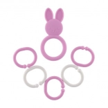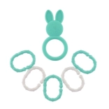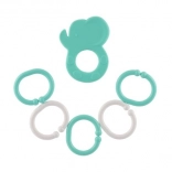Practical first-teeth set: a silicone animal-shaped teether complemented by plastic charms/rings for fun and teething relief. Supports sensory development, trains grip, and gently massages gums. Suitable for children from 3 months.