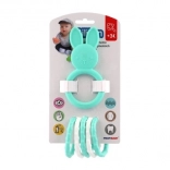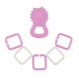 This lightweight, easy-to-hold set combines a soft silicone teether shaped like an animal with several plastic rings that can be linked together. Different textures and shapes stimulate touch, sight, and hearing while bringing relief to sensitive gums during teething.