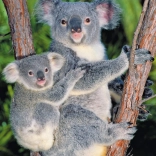 The photograph of koalas offers a realistic and immersive image capturing all the fine details of their fur and environment.