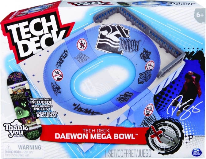 Level up your fingerboard skills with the Tech Deck Daewon Mega Bowl X-Connect Park Creator ramp. It includes everything you need to build your own awesome park. Create different combinations with ramps and guard rails to learn and perfect your tricks. Drop into the Mega Bowl, grind the rail, ride the pool edges, or set up and customize the spot just the way you like it. Skate the park with the exclusive pro fingerboard featuring Daewon Song’s Thank You Skateboards graphic included in the set, and expand your mini skateboard collection. Combine the park with other ramps compatible with the X-Connect system to create the perfect fingerboard obstacles. Use this X-Connect Park Creator playset with your Tech Deck fingerboard or Tech Deck BMX collection (each sold separately). There are plenty of packs, figures, and playsets to collect! Enjoy riding, flips, and jumps over obstacles with Tech Deck fingerboards from real skate brands! Tech Deck mini fingerboards and ramp sets make an ideal gift for girls ages 6 to 8 who love small, cool toys, or as an alternative to toy cars for boys ages 6 to 8. Start small, go big, and collect them all.