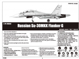 The model of the Russian fighter jet Su-30MKK Flanker G represents a miniature of a modern twin-seat multirole aircraft, developed in collaboration between Russia and China. This aircraft is known for its long range and ability to perform strikes in all weather conditions. The model is designed for a pair of experienced modelers, providing an authentic experience thanks to finely engraved panel lines.