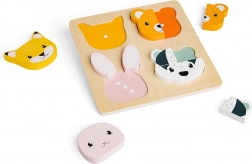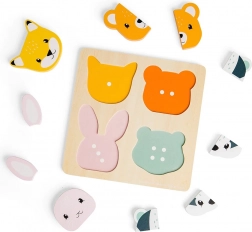 This beautiful 10-piece wooden insert puzzle is ideal for little explorers eager to learn about shapes, colors, and basic numbers. Children will be delighted by the cute animals like the fox, bear, rabbit, and badger, divided into individual pieces and needing placement into the right slots. Each piece is marked with dots, aiding children who have yet to learn numbers.