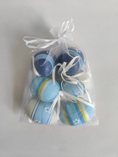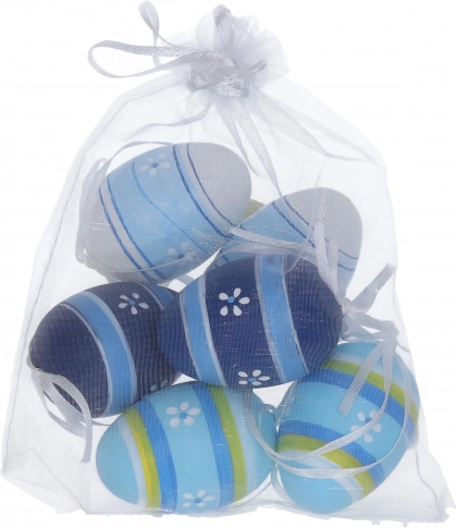 Decorative plastic eggs that will beautify your home. Each egg measures 6 cm and the package contains 6 pcs in an elegant organza bag.