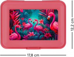 Discover the ideal solution for carrying snacks that combines design and functionality. This lunch box, with its pink color and flamingo motif, refreshes your daily routine. It is made of sturdy plastic, ensuring long-lasting durability.