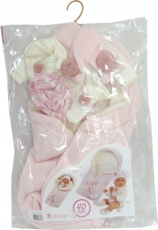Give your LLORENS doll exceptional style with this 7-piece set of clothes and accessories for 40 cm dolls. The outfits are handmade from quality materials, including organic cotton, wool, and recycled fabrics. The set offers beautifully coordinated pieces in soft shades of pink and white that enhance realistic play and bring children lots of joy. Premium materials, handcrafted finish, and perfect fit for 40 cm dolls ensure long-lasting durability and easy changing.