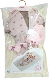 Give your doll a fresh look with a quality set of clothes and accessories for 40 cm LLORENS dolls. Each piece is hand-sewn from premium materials for long-lasting durability and comfort. The set offers 8 pieces for stylish combinations and uses organic cotton, wool, and recycled materials to be gentle on nature.