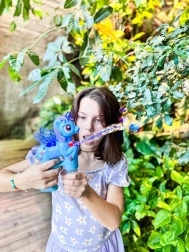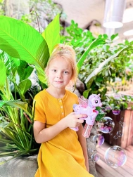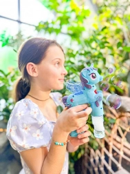 The unicorn not only blows bubbles but also plays music at every press of the trigger.
